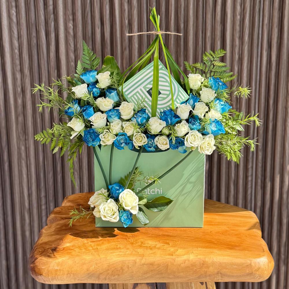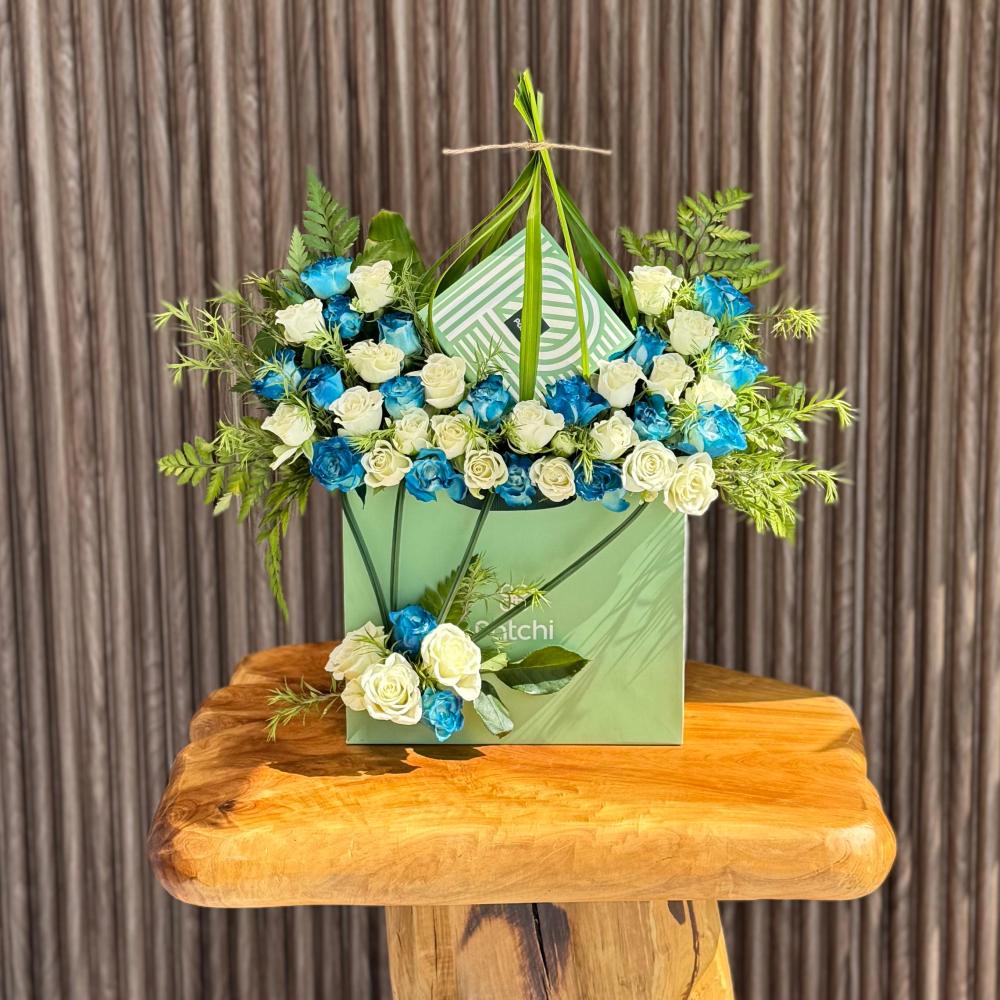 الشكل النهائي : يأتي بعدت خيارات من التنسيق الورد الطبيعي بحيث يوضع الورد بعدت اللوان مع علبة الشوكلت داخل الكيس الخاص مع اضافة البعض من الاكسسوار الطبيعي بمختلف انواعه