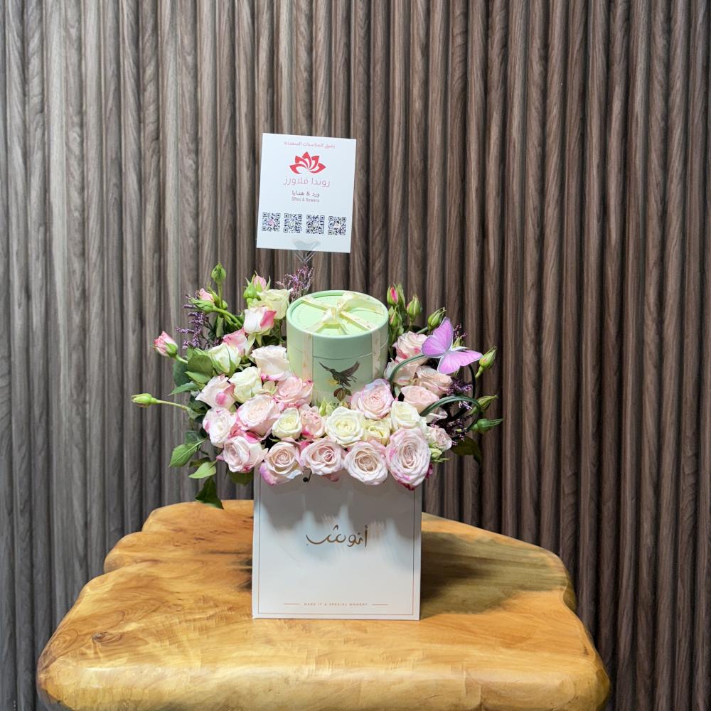 الشكل النهائي : يأتي بعدت خيارات من التنسيق الورد الطبيعي بحيث يوضع الورد بعدت اللوان مع علبة الشوكلت داخل الكيس الخاص مع اضافة البعض من الاكسسوار الطبيعي بمختلف انواعه