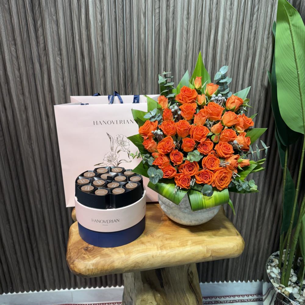 الشكل النهائي : يأتي مع فازه ورد زجاجيه بتنسيق انيق متعدد مع اضافات جماليه من الاكسسوار الطبيعي