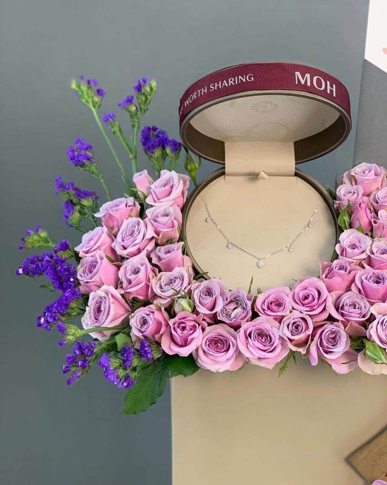 عقد انيق من الفضة الاسترلينية الخالصة ومطلي بالذهب عيار ١٨ ومرصع بالألماس الصناعي السويسري الفاخر متوفر بلونين فضي وروز قولد